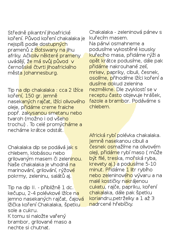 Chakalaka Středně pikantní jihoafrické koření. Původ koření chakalaka je nejspíš podle dostupných