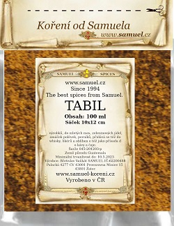 Tabil je další universální africké koření převážně obsahující pepř, koriandr, kajenský pepř, fenykl, muškátový oříšek, hřebíček, anýz, skořici a kamonou sůl.