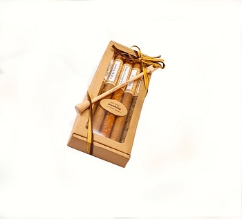 5x zkumavka v dárkové krabičce s dřevěnou lopatkou.